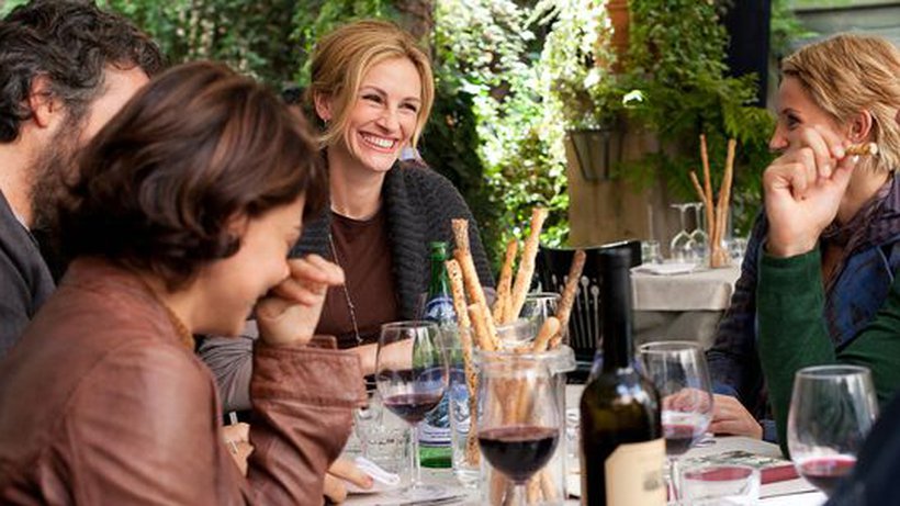 Bereits vor einiger Zeit habe ich die Verfilmung des Buches gesehen. Obwohl es nicht mein Lieblingsfilm geworden ist, haben mich einige Szenen dennoch berührt und auch fasziniert. Julia Roberts als Hauptdarstellerin sowie die besuchten Länder und Städte bereichern den Film sehr – bei Pizza, Pasta und Gelato kann man als Zuschauer einfach kaum noch widerstehen. Neben den kulinarischen Freuden weckt der Film aber auch großes Interesse, mehr über die Hauptdarstellerin »Liz« und ihre Beweggründe, ihr altes Leben in New York komplett aufzugeben, zu erfahren – welche in der Verfilmung zwar angeschnitten werden, aber dem Zuschauer nie ganz klar werden. Allgemein gesehen führte der Film von Regisseur Ryan Murphy aus dem Jahr 2010 trotz seiner Beliebtheit bei den Kinogängern jedoch zu Spaltungen in der Pressekritik. Viele Kritiker taten den Film als »Selbstfindung à la Hollywood« oder gar als »Augenschmaus ohne Seele« ab. Auch meiner Meinung nach finden sich in der Verfilmung zu viele Elemente der typischen Selbstfindungsliteratur mit zu vielen Kalender-Zitaten und ohne Tiefgang.